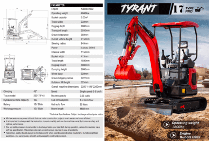 The TYPHON TERROR XVIII Prestige Mini Excavator is a two-ton trench digger that will make small and medium construction projects more luxurious and efficient. This small excavator is designed to be simple to move around in various places, such as farms, gardens, public areas, parks, orchards, and more. It is small yet strong. Let's look at the outstanding things that set the TYPHON TERROR XVIII Prestige apart.