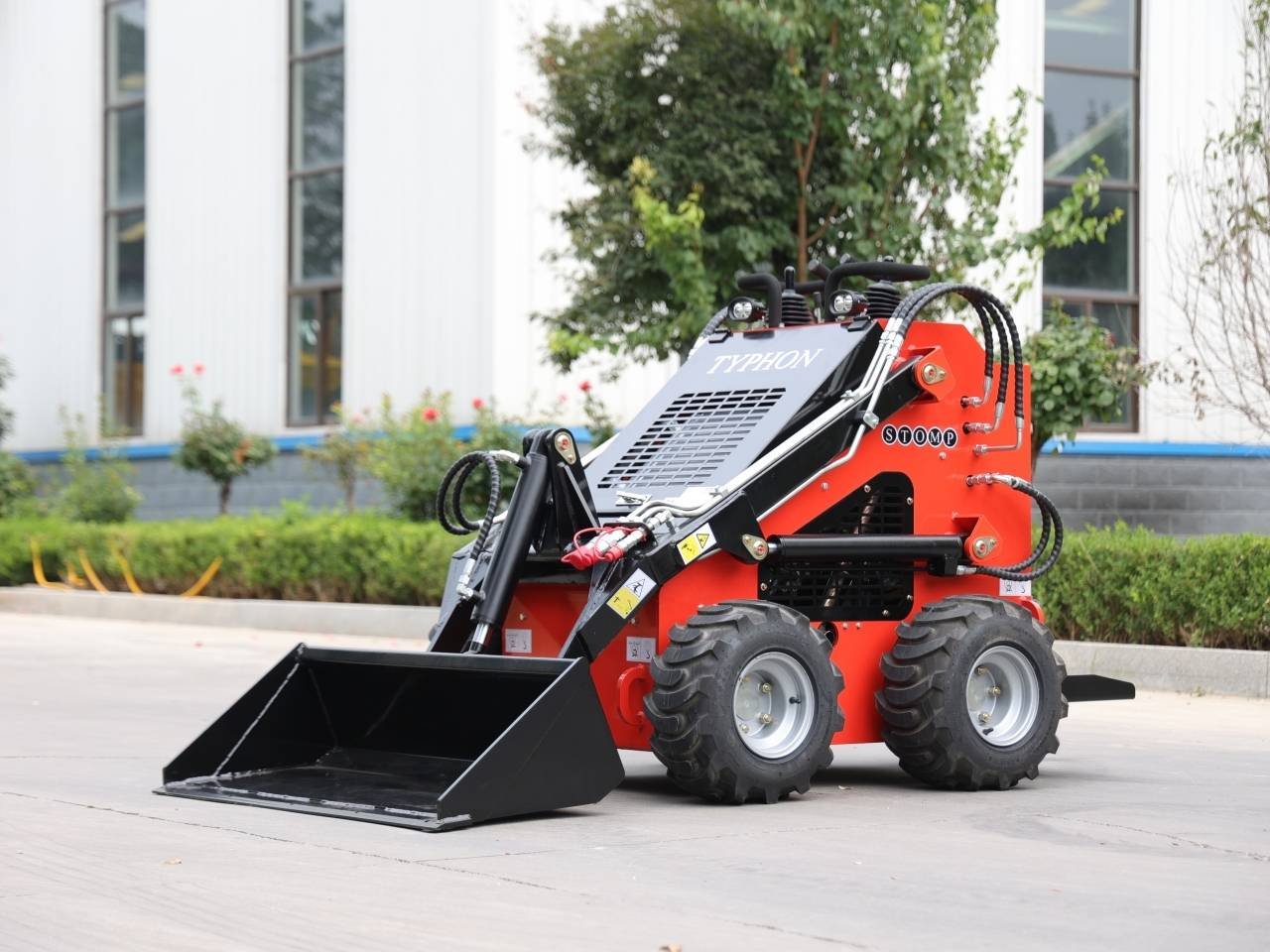 The TYPHON STOMP is engineered to excel in small-scale construction projects, offering superior performance and easy maneuverability. Weighing 1830lbs and equipped with hydraulic four-wheel drive, this mini loader tackles various tasks with efficiency. Ideal for parks, gardens, farms, and public spaces, it ensures your projects are completed with precision and speed.