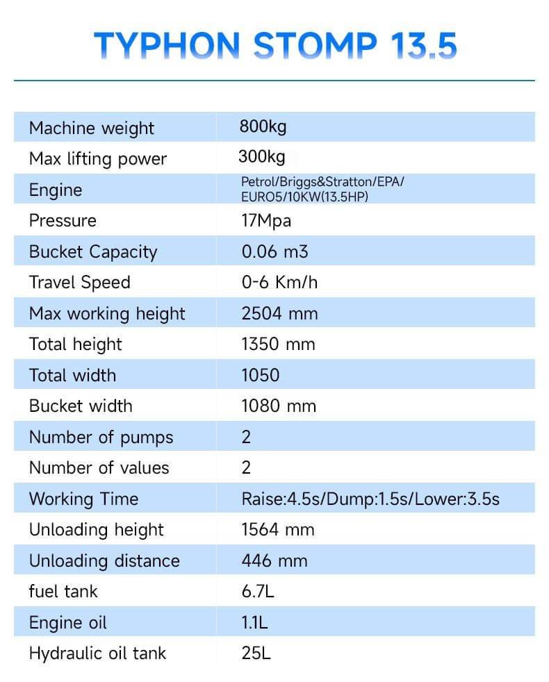 TYPHON STOMP Mini Skid Steer Loader Key Features