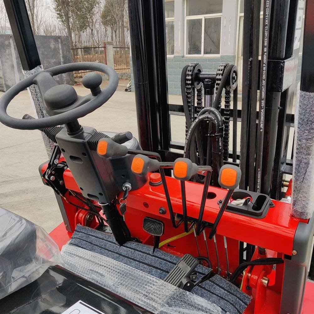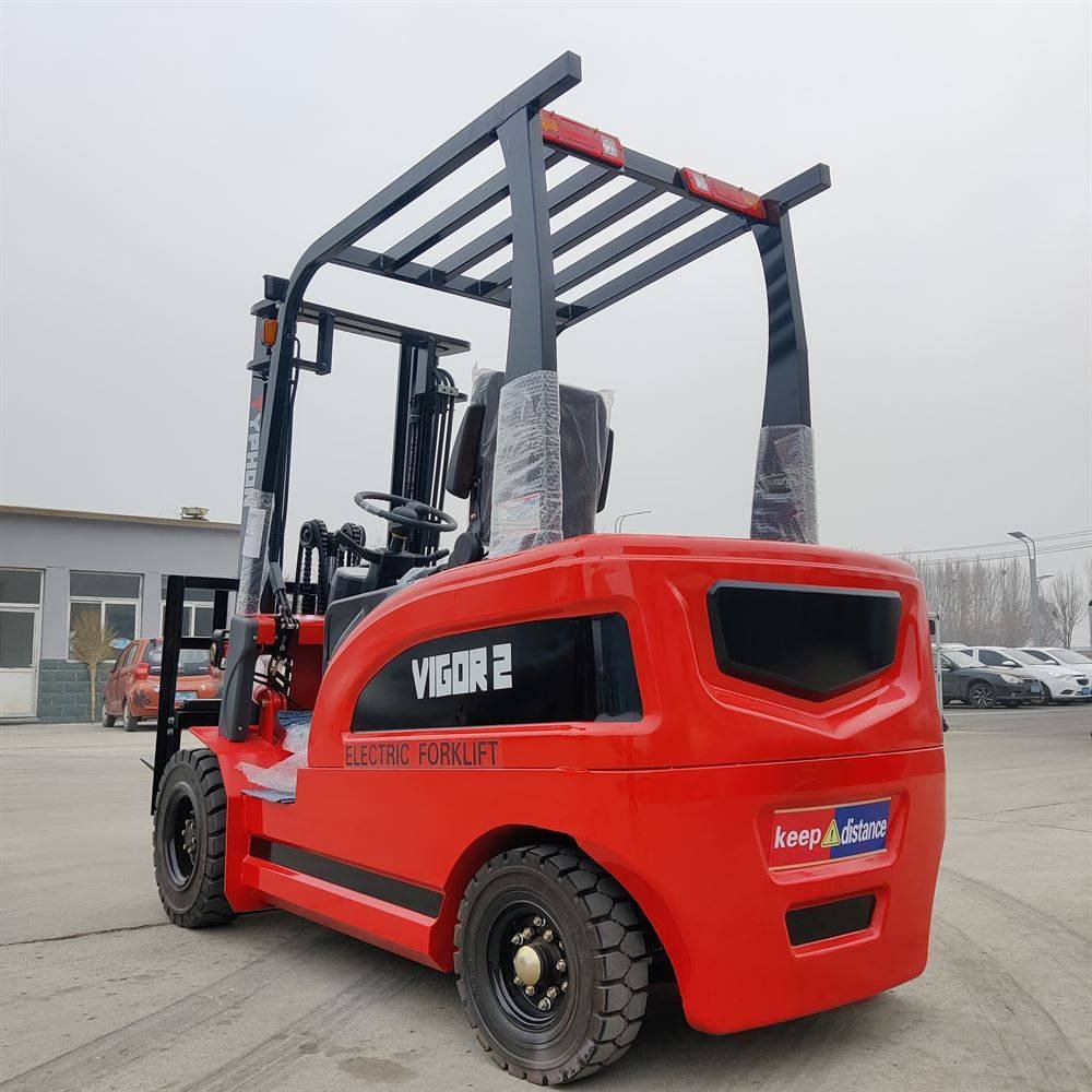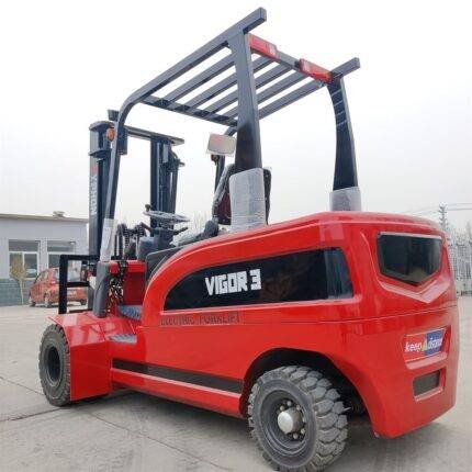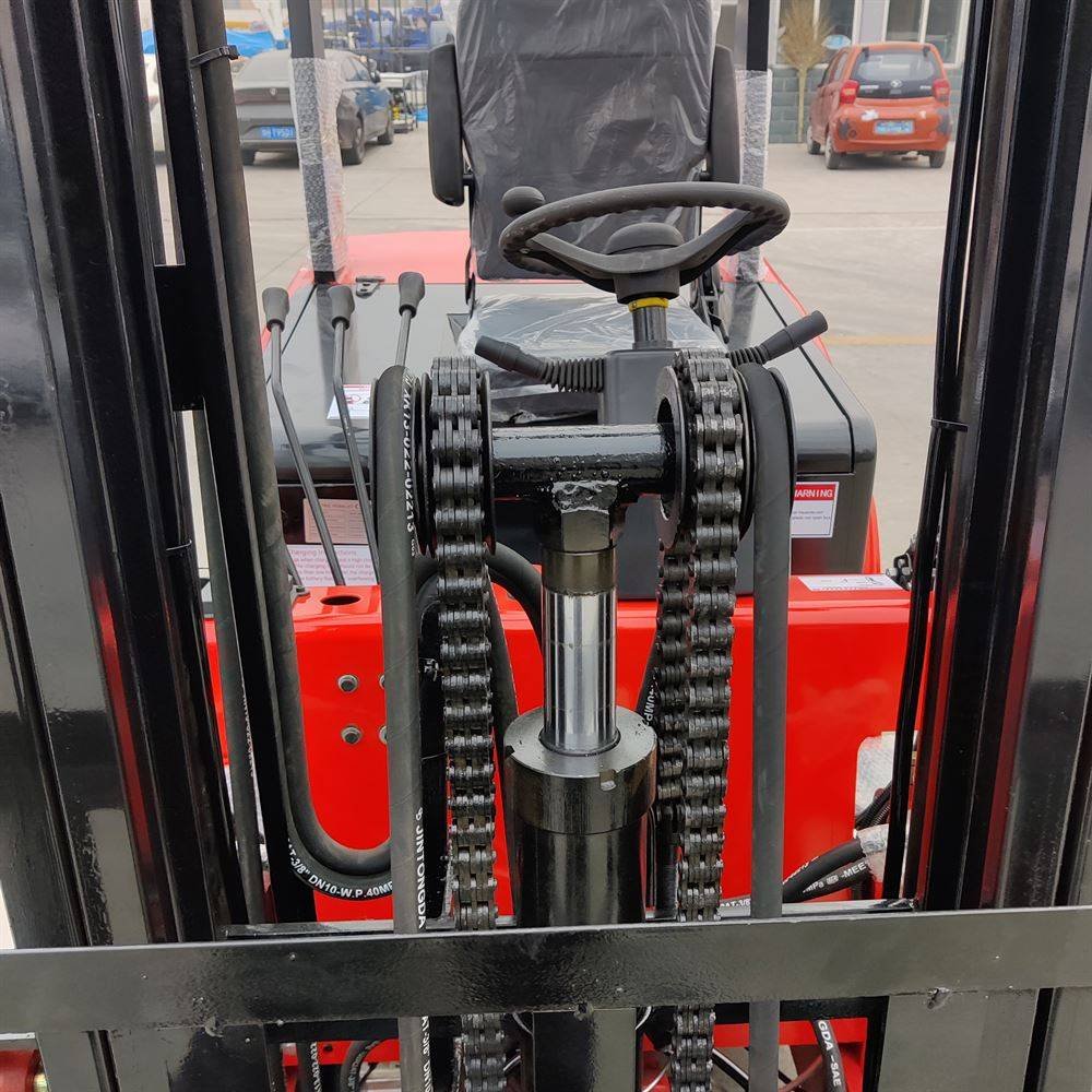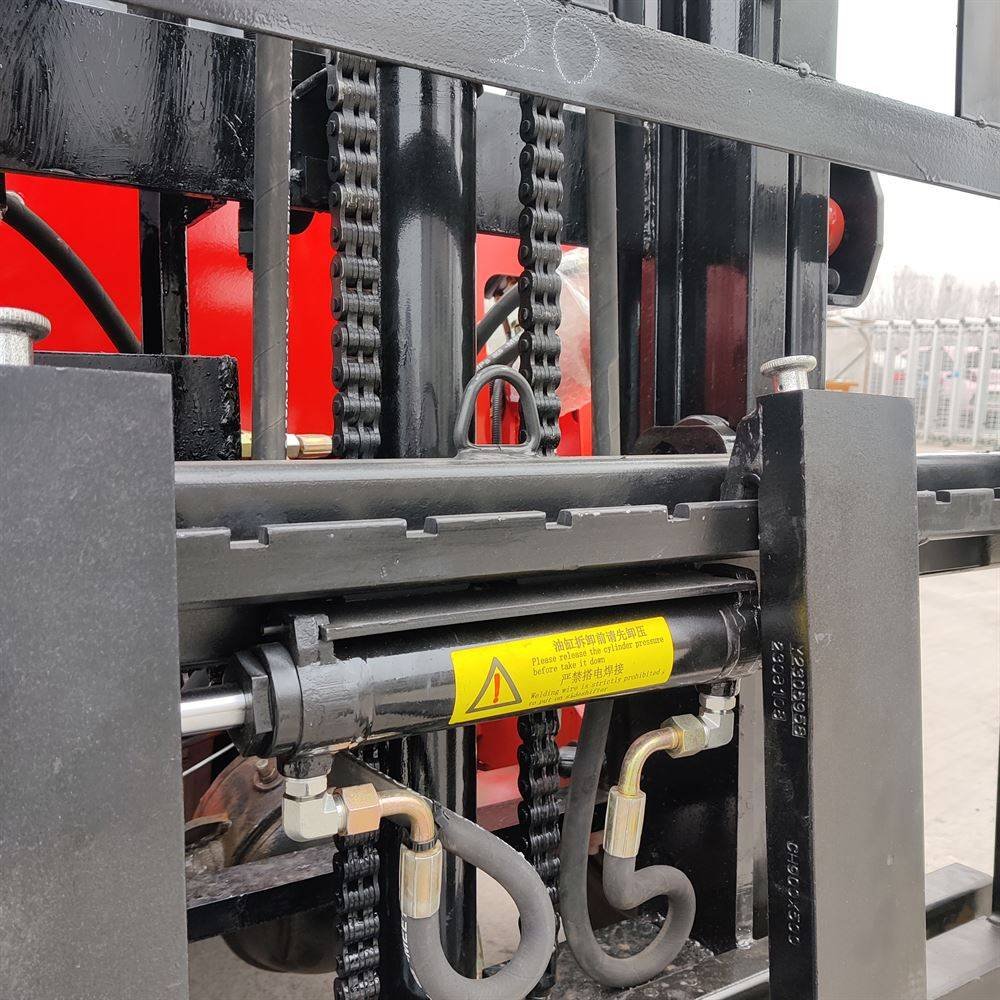 Safety features include a hydraulic service brake and a mechanical parking brake, providing reliable stopping power. The gantry material, constructed from forklift 120 special steel, and forged forks contribute to the robustness and longevity of the forklift, even in demanding industrial settings.